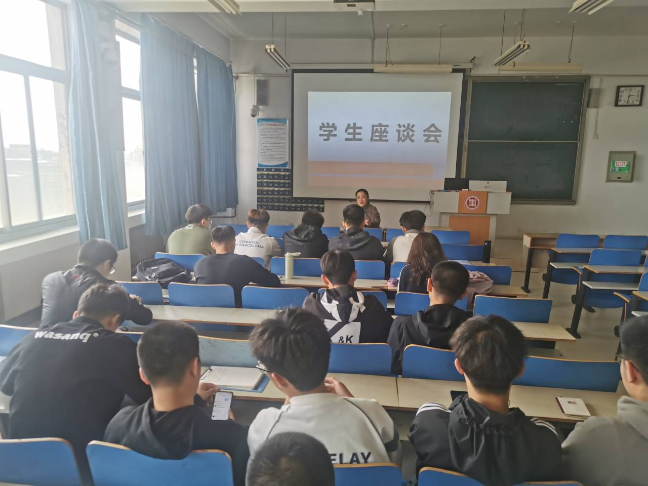 座谈会上,公金梅首先向与会学生代表介绍了座谈会的目的和意义,希望同学们在座谈会上畅所欲言,积极建言献策,共同助力学院和学校发展。随后,学生代表围绕班干部职责分工、宿舍管理、自习室管理、学生就餐、校园网络、热水供应、专业学习、课程安排、文体活动安排、毕业设计、就业等方面与在场老师进行了交流,针对学习、生活中遇到的各种问题表达了自己的见解和想法。在场老师对学生们提出的问题一一解答。