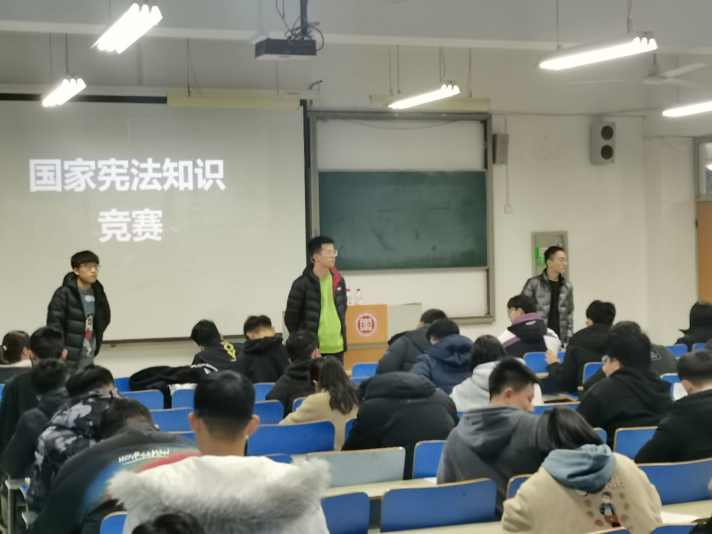 12月4日晚,学院组织了宪法知识竞赛活动。本次竞赛采取闭卷答题的形式,竞赛内容涉及宪法的基本理论知识,宪法的内容、地位等方面。竞赛过程中,同学们认真审题,仔细答题,赛场秩序井然,每位参赛同学态度端正,严格遵守参赛纪律。此次竞赛共58人参加,合格率达百分之百。