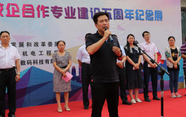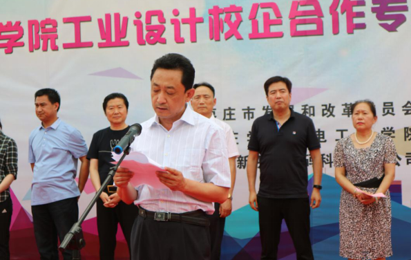 山东济南新视觉数码科技有限公司王铁兵董事长在致辞中介绍了澳门网投官方网站工业设计专业于2015年联合山东济南新视觉数码科技有限公司共创校企合作专业建设与人才培养新模式,并祝贺2019届首届校企合作专业学生完成学业,顺利毕业。