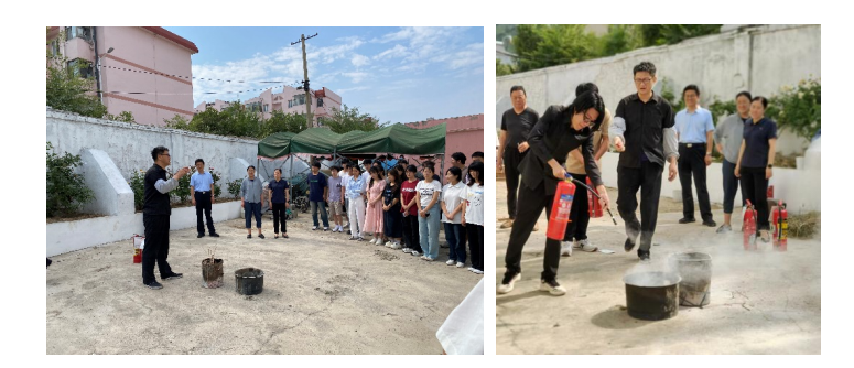 演练首先模拟了实验室用电起火的安全事故,学院领导和实验室师生按照预案对模拟的安全事故进行了有效处置。随后,学院领导和实验室师生模拟了火灾等安全事故的紧急逃生。最后,在工程训练楼外空地,学院还组织培训了灭火器等消防器材的使用。