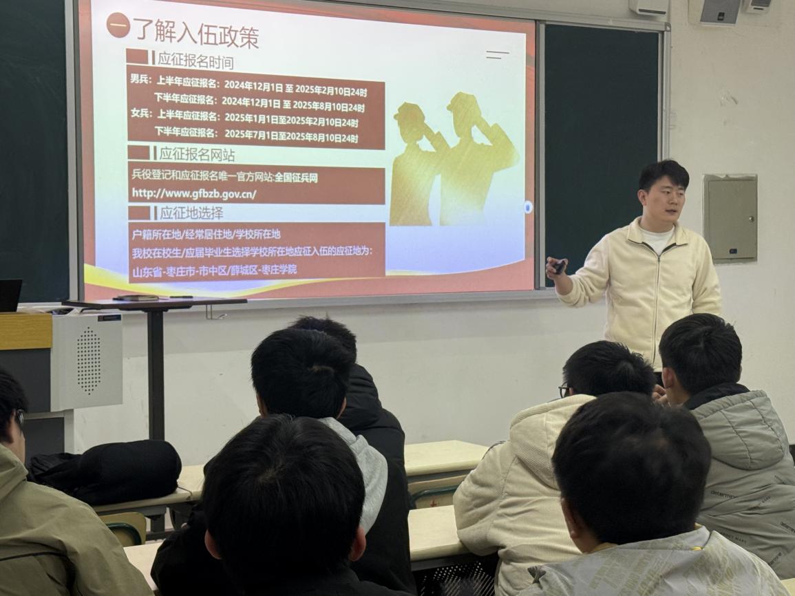 会议通过讲述各项入伍优待政策增强同学们的入伍热情。入伍征集对象以大学生为重点,突出各级各类学校大学毕业生的征集,优先批准理工类大学生和备战打仗所需的技能型人才入伍;大学生特别是大学毕业生享受优先报名应征、优先体检政考、优先审批定兵、优先安排使用,大学生参加体检开辟绿色通道。澳门网投官方网站的学子们具备扎实的专业知识和技能,在部队中定能发挥出独特优势,为国防事业贡献力量。