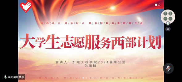 为助力学子明晰职业方向,传承志愿精神,增进对西部计划的深入认知,3月26日晚7点,澳门网投官方网站通过腾讯会议举办了一场西部计划经验交流会。学院特意邀请了2024届优秀毕业生朱晴晴和刘娉婷作为嘉宾,为同学们答疑解惑。