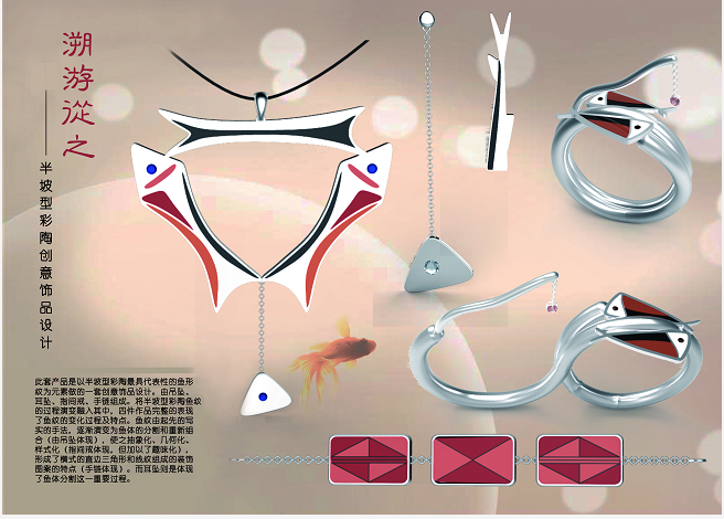 近日,澳门网投官方网站2015级工业设计专业学生周扬丽,其作品《溯游从之——半坡彩陶鱼纹创意饰品设计》在2018中国西安国际文创创新设计大赛中取得优秀奖,获得奖金3000元。此次大赛是由陕西省文化厅、陕西省教育厅、陕西省新闻出版广电局,以“文化中国、品创西安”为主题,面向国内外征集的以陕西文化为设计元素的优秀文创作品。