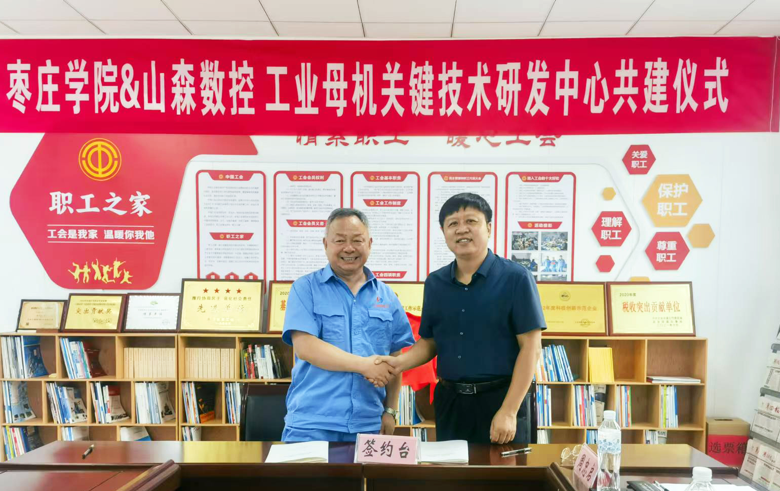 8月1日上午,澳门网投官方网站-山森数控联合共建“工业母机关键技术研发中心”签约仪式在山东山森数控技术有限公司举行举行。校党委委员、副校长李目海,山森数控董事长张士银及公司相关人员,科技处、澳门网投官方网站、信息科学与工程学院、光电工程学院负责同志和部分教师代表参加活动。
