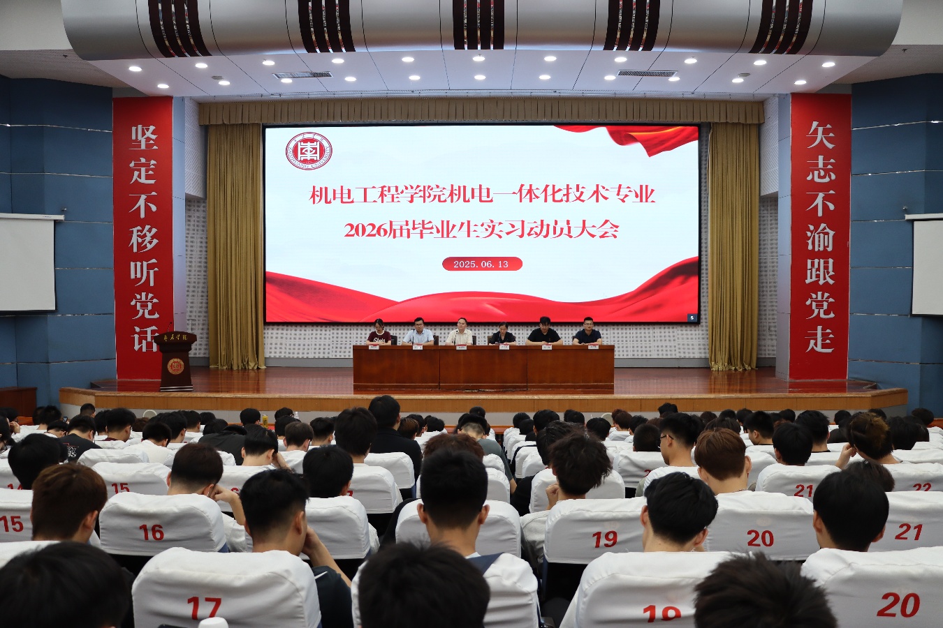 为切实做好机电一体化技术专业2026届毕业生实习管理工作,帮助学生明确实习目标与方向。6月13日上午,澳门网投官方网站在综合楼报告厅召开机电一体化技术专业2026届毕业生实习动员大会。澳门网投官方网站党委书记宋建修,院长卢纪丽,相关班级辅导员以及400余名2026届专科毕业生参加了本次会议。会议由党委书记宋建修主持。