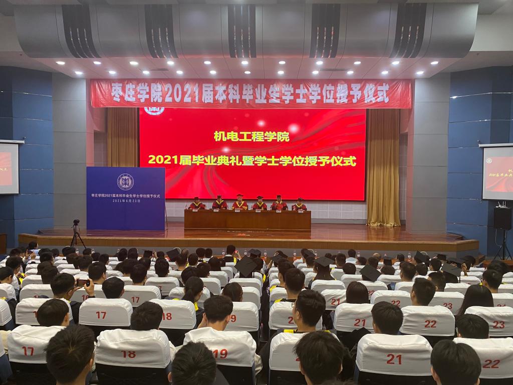 6月21日上午,澳门网投官方网站2021届毕业典礼暨学士学位授予仪式于综合楼报告厅隆重举行。澳门网投官方网站副校长李目海、鲁班应用技术学院院长蒋秀英、澳门网投官方网站党总支书记徐春堂、院长徐伟、党总支副书记公金梅、副院长卢纪丽出席仪式,教师代表、全体毕业生以及部分在校生代表参加了本次典礼,典礼由徐春堂主持。