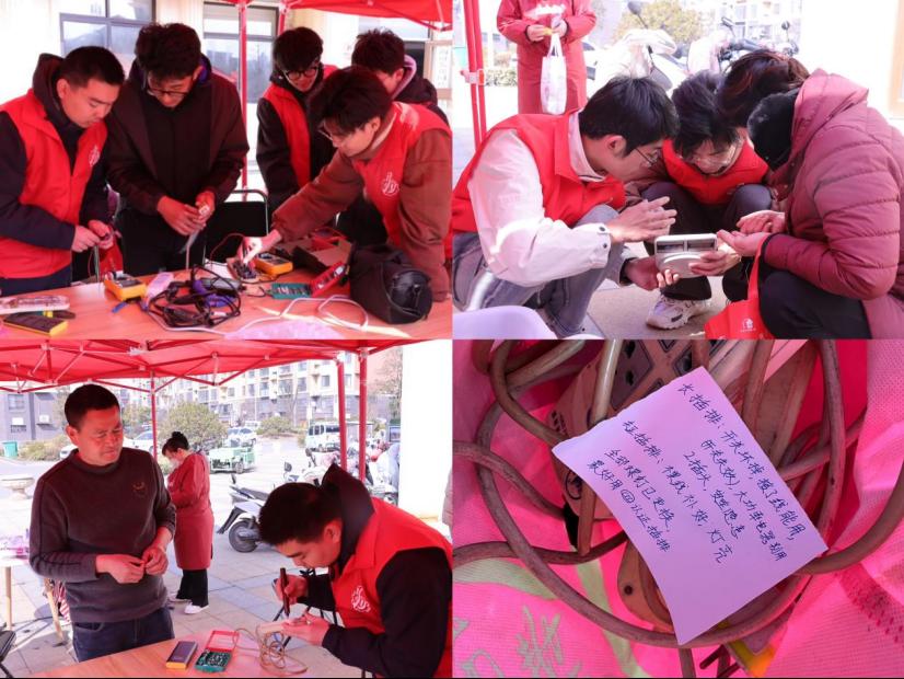 经过前期培训和相关材料准备,维修活动有条不紊开展。活动现场,来自澳门网投官方网站奚仲机电产品创新协会的志愿者们发挥专业优势,为社区居民提供免费的家电维修服务。他们仔细检查每一件送来的家电,不断用万用表测量电路,直到找到故障所在之处,他们时而又拿起电烙铁进行元器件的焊接与修改。志愿者们运用所学知识和技能,迅速找到问题所在,并进行精心维修,他们以认真负责的态度对待每一件电器的维修,尽力让每一件家电恢复正常使用。对于因配件问题暂时无法修好的插线板,他们也会认真登记、带回学校修好后再送还至居委会,还贴心地写下用电安全提醒。志愿者们以热情的服务和专业的技能赢得社区和民众的一致好评,展示了枣院学子良好的精神面貌。