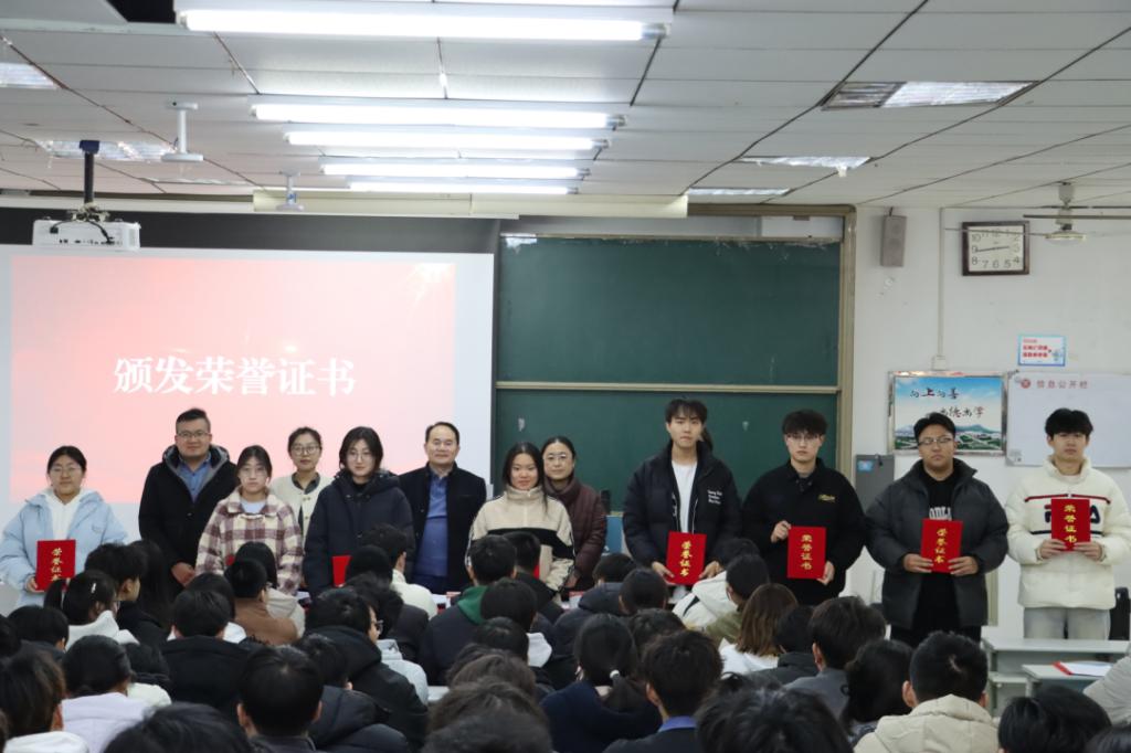 会上首先宣读了《澳门网投官方网站关于表彰2024年度团学工作先进集体及个人的通报》,并向他们颁发了荣誉证书,以表彰他们在学习生活、星级宿舍、社会工作和文体活动等方面的突出成绩。随后,国家奖学金获得者庄博凯、五星级宿舍代表唐皓仪、创新创业竞赛代表李仕豪依次发言,分享了他们的学习心得、成长经历和个人经验,为同学们提供成长建议。