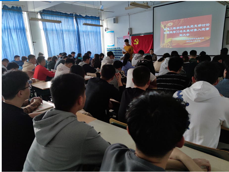 2020年10月30日下午,澳门网投官方网站学生党支部在理工楼2502教室召开支部大会,讨论接收陈森等36位同学为预备党员事宜。支部31名党员参加了本次大会。会议由党支部书记公金梅同志主持。